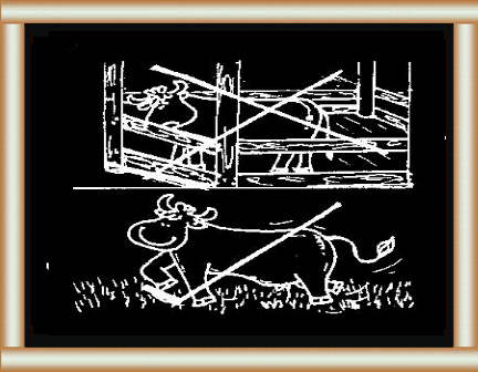 Bölmeler ve Bağlama noktaları(yular) Çizimlerde ineğin ayağa kalkarken sergilediği normal hareket gösterilmekte. |